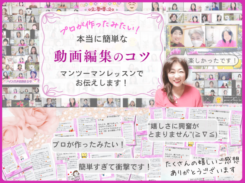 ✦オシャレな感動のスマホ動画編集の楽しさを教えるインスタのプロ動画編集専門講師のやさしい個人レッスンです
