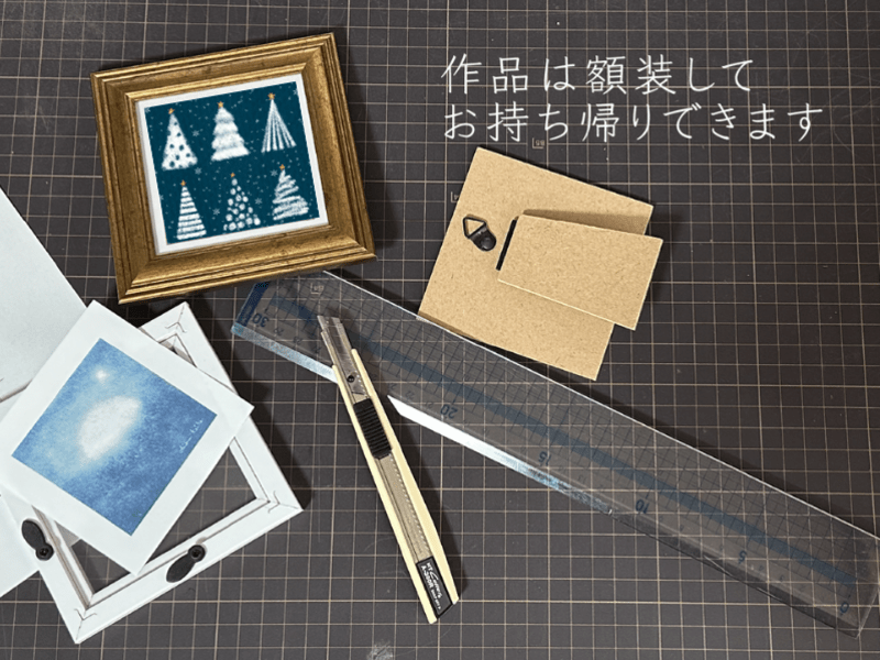 おしゃべりしながらのパステルアート体験はあっという間に時間がすぎてとても短く感じられ、プリントアウトして額装されたツリーの絵はとても素敵なお土産になりました。
