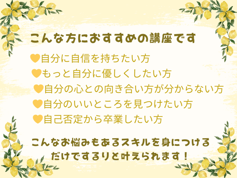 自己肯定感を高めたいと思っている方には、この講座はオススメです。