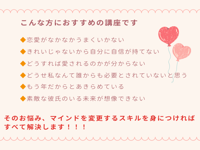 悩みを抱えている方にはおすすめの講座です。