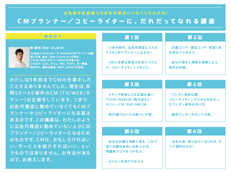 CMプランニングやコピーライティングスキルを生かしたプレゼン資料の作成法、プレゼン法を教えることが可能です。