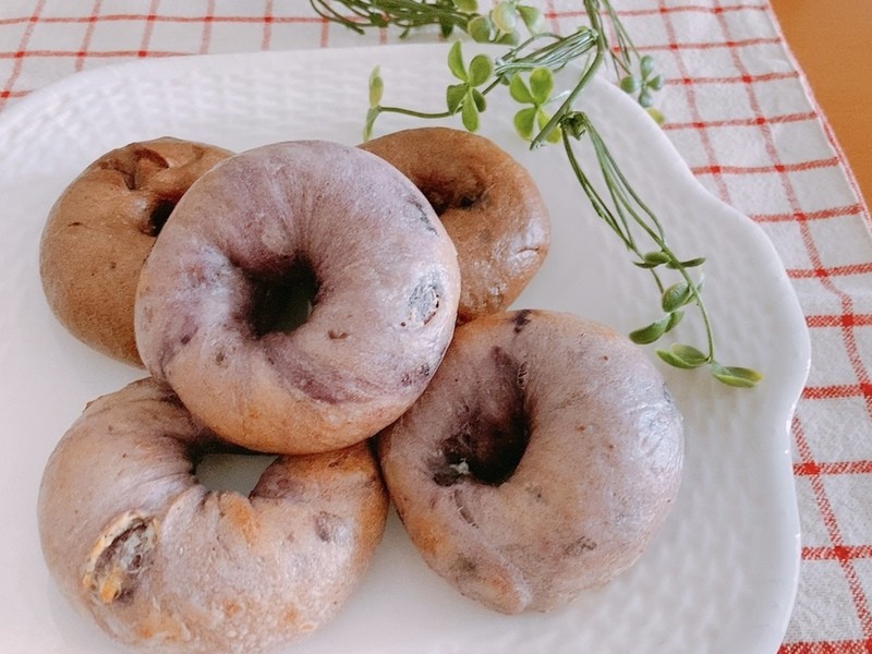 【チョコベーグル】ココア生地にチョコチップを混ぜ込んだベーグル。砂糖控えめなので罪悪感なく食べられます。