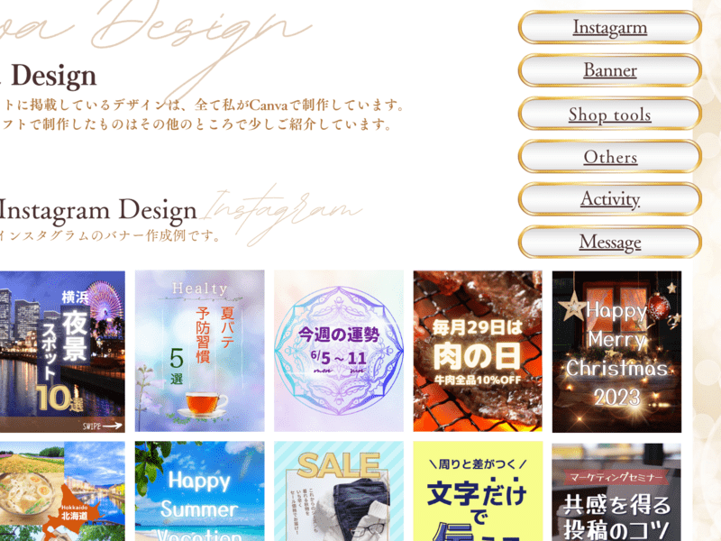 ただし、SEO対策等はできないので、本格的なHPにしたい場合はあまりお勧めしません。バナーや各部品だけCanvaで制作することは可能です。