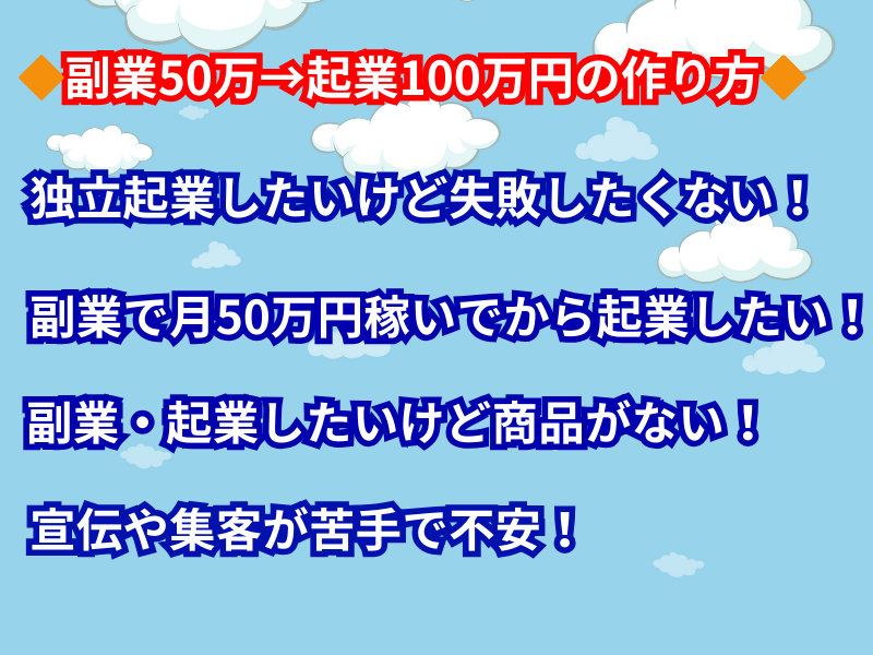 ・まず副業で月50万円稼げるようになって独立起業したい方