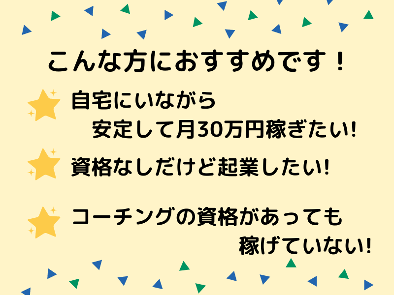 コーチング未経験の型から、コーチングをお仕事にしているけど思ったような収入につながっていないという