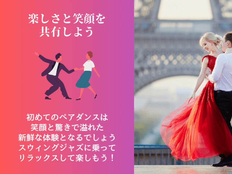 約100年前のニューヨークで生まれたスウィング・ジャズで踊る男女のペアダンスです。