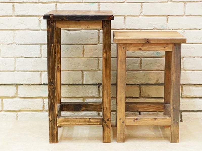 高さは2種類から選べます。電動工具による組立てやダボ仕上げが学べます。ワックスで塗装して仕上げます。