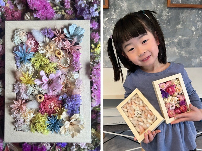 12歳の娘、7歳の息子が体験しました。ワイヤーをねじるところは大人のサポートが必要ですが、他は難しいところはなく、「これぐらいの長さにしよう。」「このあたりに付けたい。」というのを自分たちで考えて作っていました。出来上がりはそれぞれ個性も出て、おしゃれなしめ縄ができました。ドライフラワーなので、乾燥剤を入れておけば次の年もまた使える、とのことでした。丁寧に説明してもらえ、わかりやすかったです。