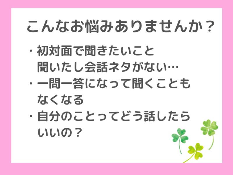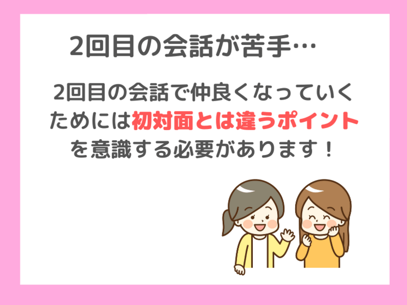 2回目以降に会う人に対して、会話のとりかかりが分からず自分から積極的に会話を振れずに悩んでいました。