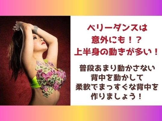ベリーダンスの動きで背中、首・肩周り動かして背中美人になれる💕初めてでもできる簡単な動きです。少人数の対面レッスンで1人1人しっかり見ます!
