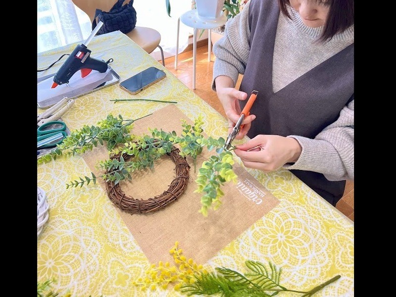 初めてでも大丈夫!アーティフィシャルのミモザで作る春色リース。不安を一緒に楽しさに変えていきましょう。