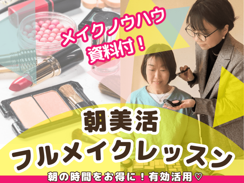 朝活メイクレッスン❤平日早起きでお得!基礎からしっかりフルメイクが学べます♡プロ御用達!メイク道具も揃っているので手ぶらでOK!