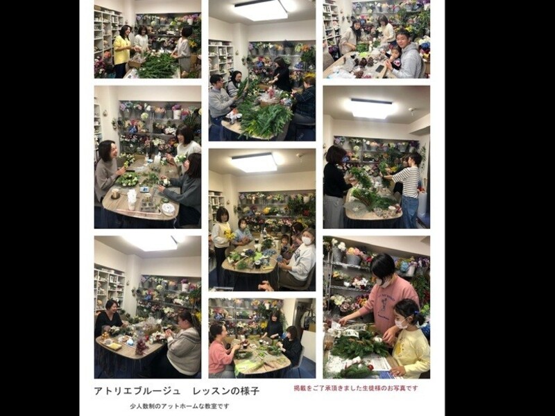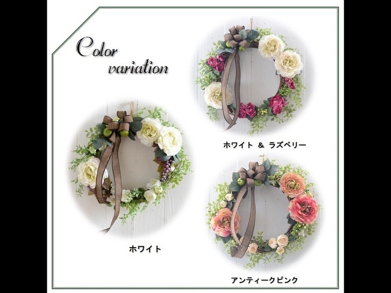 アトリエブルージュ人気のリースが1日で作れます。お好きなお花の色で作るあなただけのオリジナルリースができます。