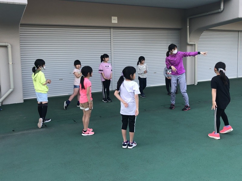 先生が、自然と正しい走り方が身につくよう工夫したトレーニングをしてくださっていて、楽しそうに参加していました。