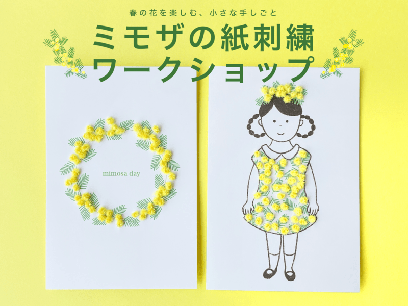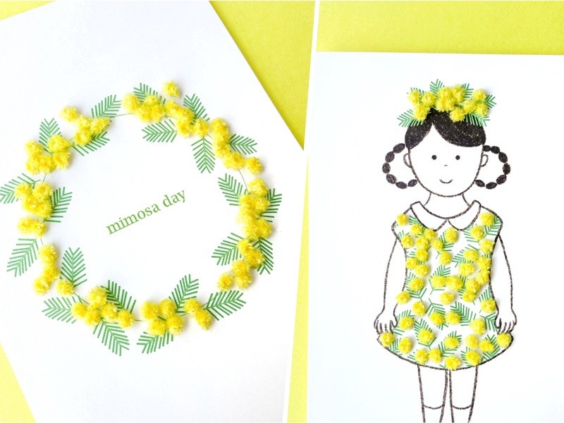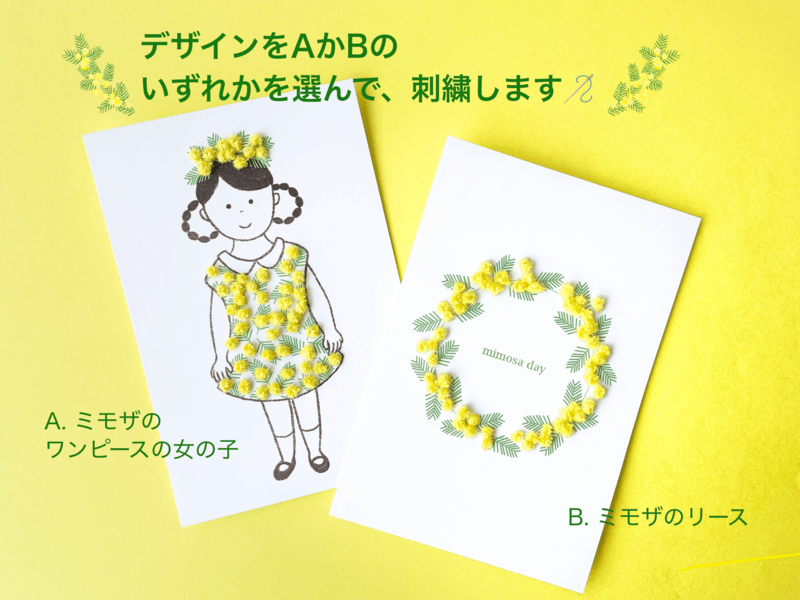 イラストの上から特別な刺繍糸で、かわいいミモザの花を咲かせます!