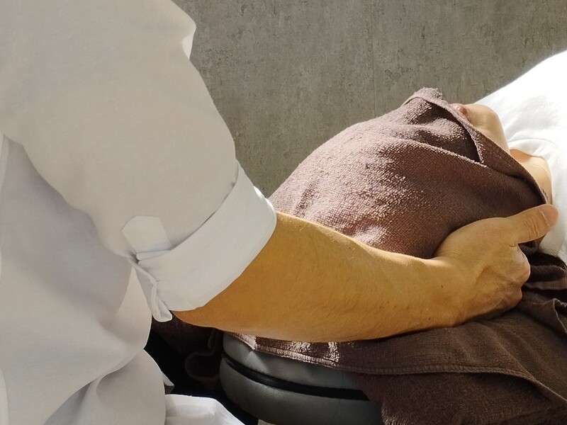 実際に指の使い方やマッサージの仕方を説明しながら、先生が施術してくれて、その後、私が先生にマッサージしました。