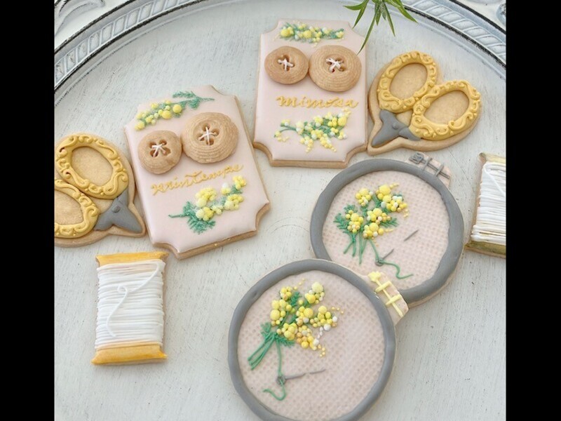 ふわふわビタミンカラーのミモザを刺繍風アイシングで作りませんか?