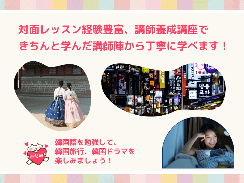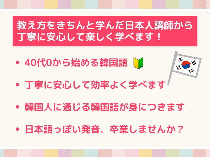 プロの日本人講師から、丁寧にわかりやすく、安心して学べる韓国語。