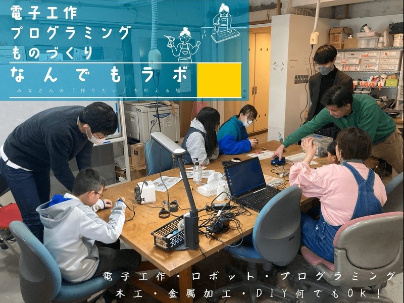 電子工作・ロボット・プログラミングを掲げていますが、木工・金属加工・DIY何でもOK!