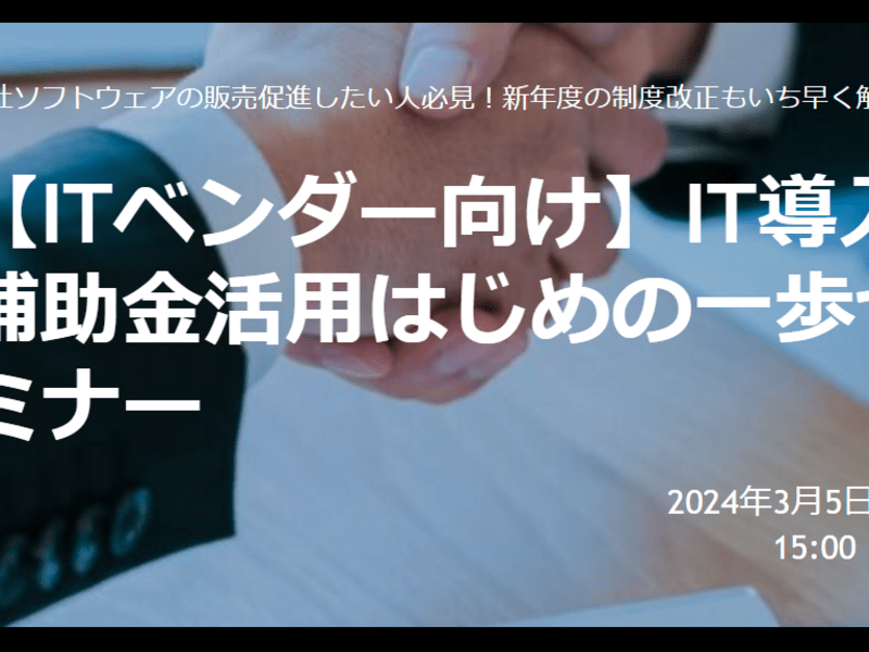 本ウェビナーでは、補助金活用の専門家が「IT導入補助金」の公募要領や活用方法、採択につながるポイント等について、どこよりも分かりやすく解説致します。