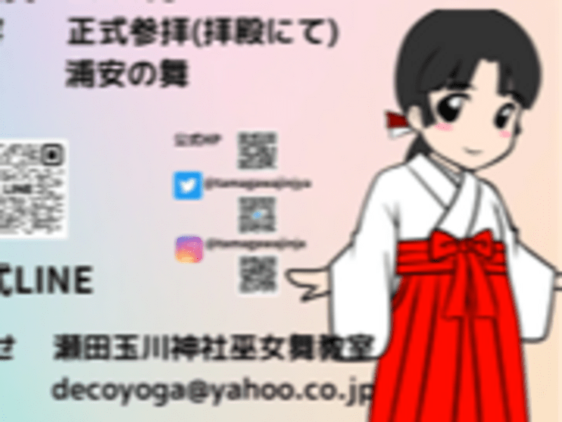 長年のチアリーダー経験を活かし、皆様が笑顔で幸せになれるようなお教室を心がけています!初心者にもわかりやすく丁寧に、楽しくお教えします!難しい決まり事や、しきたり等はありません!巫女さんや神社がお好きな方はお気軽にお申込みください!!