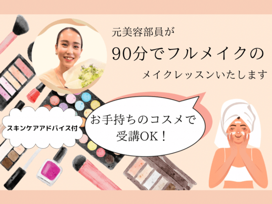 ストアカでは、オンラインのメイクレッスン(スキンケアアドバイス付き)とメイク・スキンケアレッスンを開講しております。