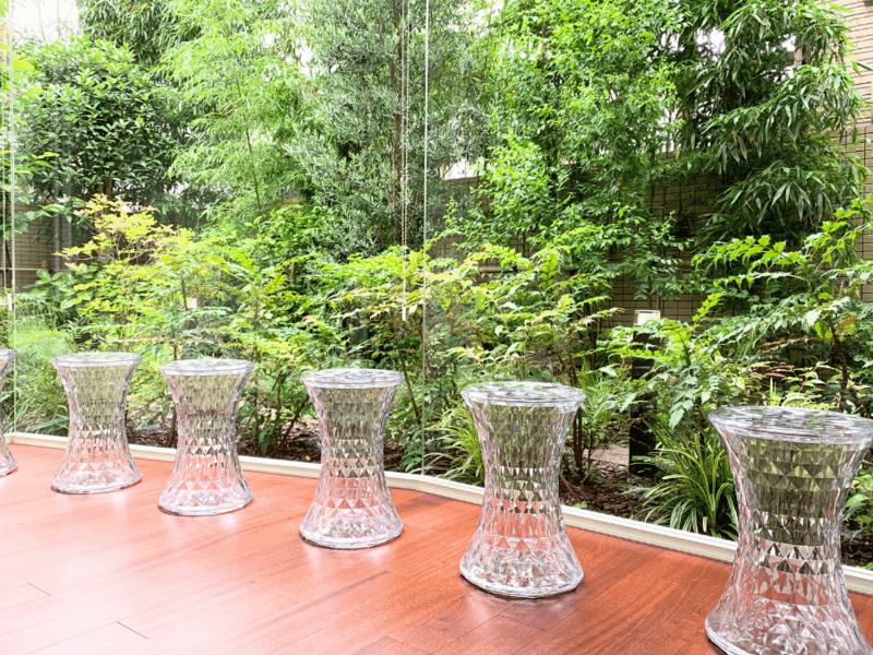 大きな窓から緑を眺め