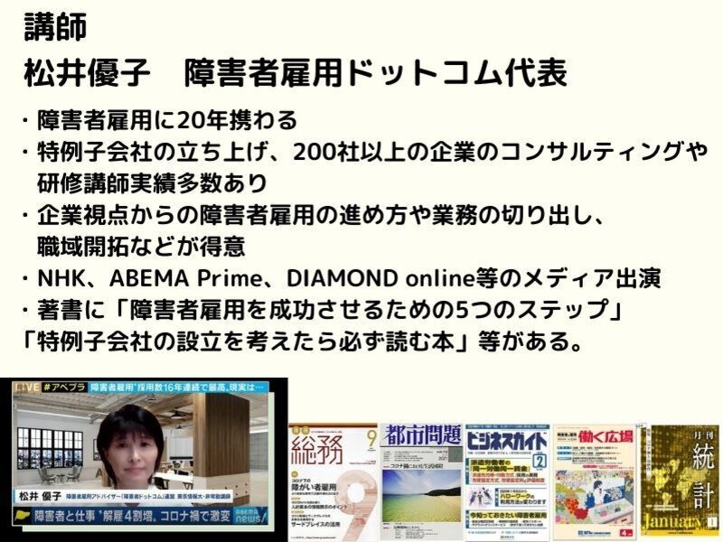 ・障害者雇用20年、200社以上の企業のコンサルティングや研修講師