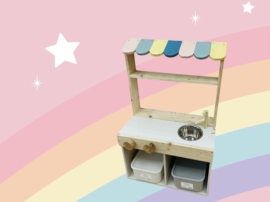 ガスのつまみがカチッカチッと鳴る、おままごとキッチンを手作りしませんか?屋根の角とボール部分はジグソーカットをします。