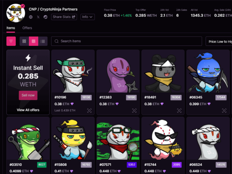 その後日本最大のDAOコミュニティの「NINJADAO」に参加、CNPというNFTを1体購入。それに続き少しずつNFTを購入し現在は約100枚以上ものitemを保有。