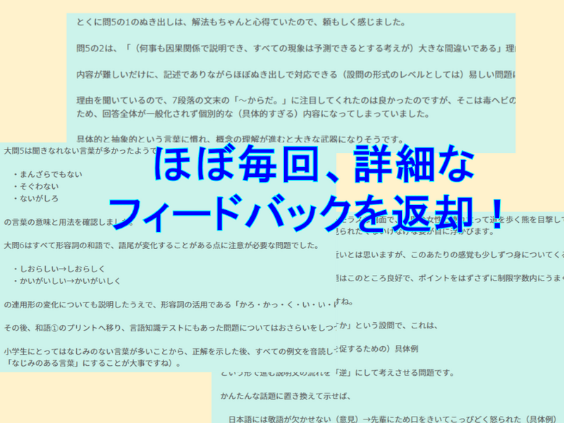 偏差値20アップも珍しくなく、おかげさまで国語が苦手なお子さんをお持ちの親御さんからたいへん好評を得ております。