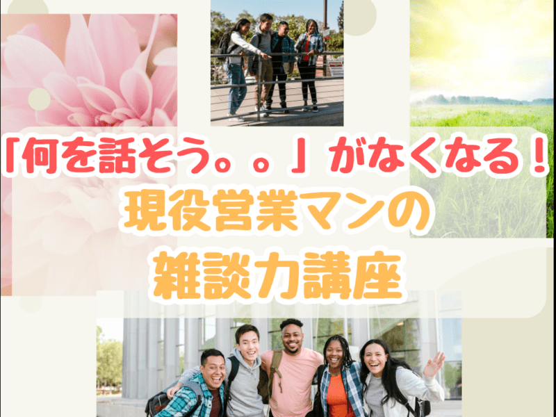 この講座では、誰もが欲しい雑談力について現役営業マンが解説します!実践して頂くとプライベートも仕事もより充実します。