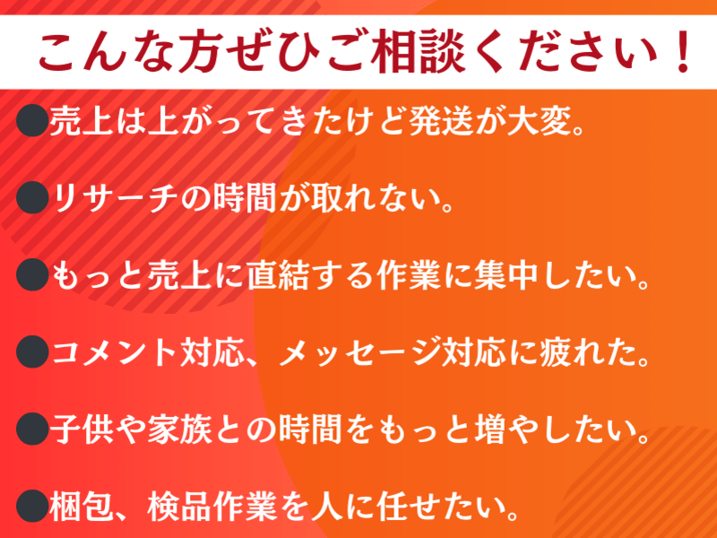 * 売り上げは上がってきたけど、1日の発送作業が負担に感じる。