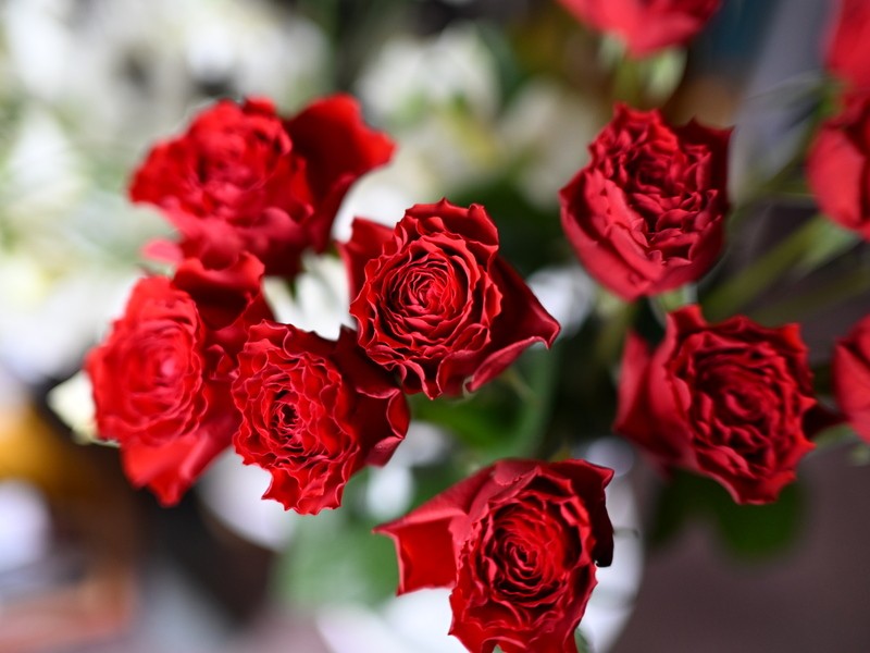 お花屋さんの店主様とカメラマン様の2人体制で対応いただき、産直の色や形、香りも様々なバラをメインに撮影を行いました。