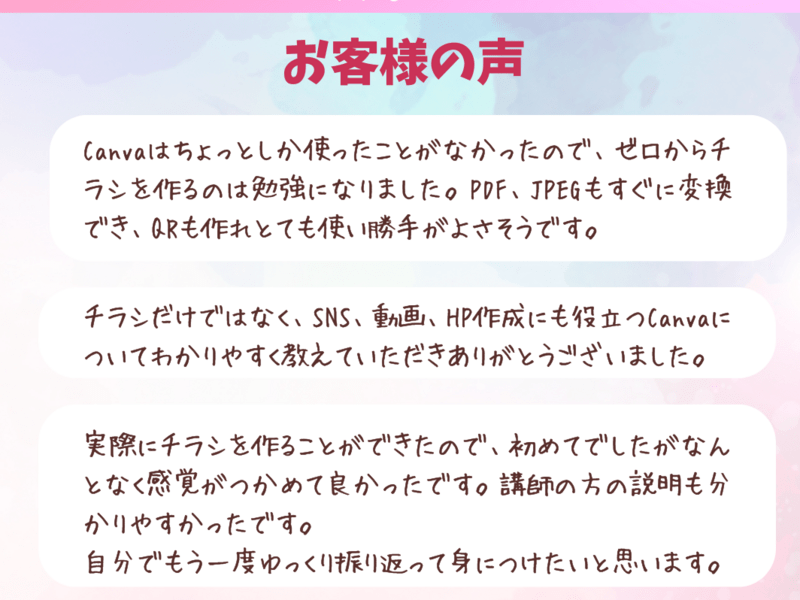 私の講座ではSNSで目を惹く、集客のためのバナーやチラシづくりについて教えています。