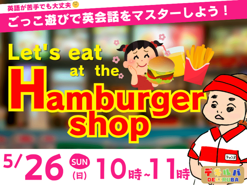 事前に印刷したハンバーガーショップのメニューとお金をみて、子どもは受講前からワクワク。授業中も、チャンヌ先生の子供の引き出し力のおかげか、わが子も他の子もどんどん知ってる英語や教えてもらった言葉で会話がすすんでいきました。「チャンヌ、苦手だから助けてな」の言葉に、人のために頑張りたがるうちの子はますます張り切ったようです。楽しい授業をありがとうございました。