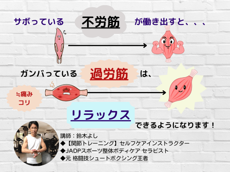 根本から改善できる「12不労筋 活性化エクササイズ」講座にて、実演指導でお伝えするインストラクターです。
