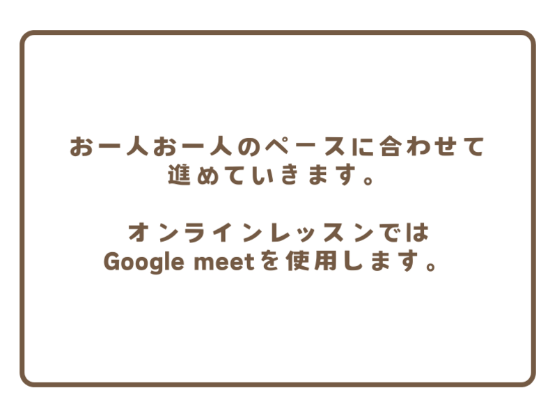 ・オンラインレッスンでは未就学児不可、それ以上の年齢のお子様は一人でレッスンを受けられるor保護者様同席でのご受講をお願いしております。