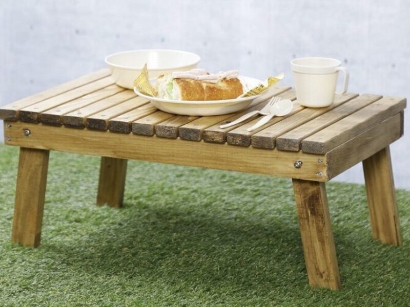 持ち運びに便利、コンパクトに収納できる折りたたみテーブルです。