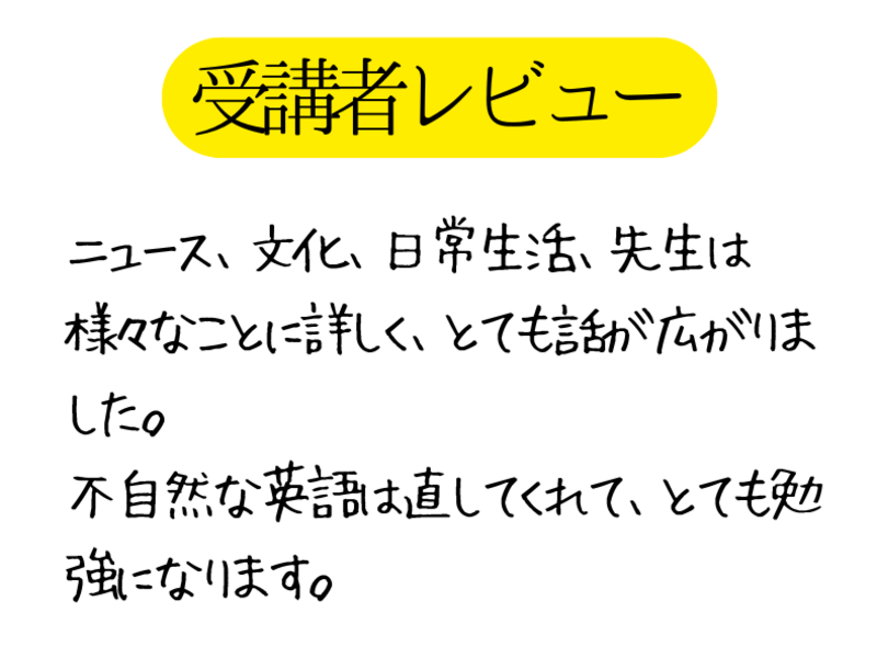 • この講座は「話し易いネイティブ先生とマンツーマン」でした