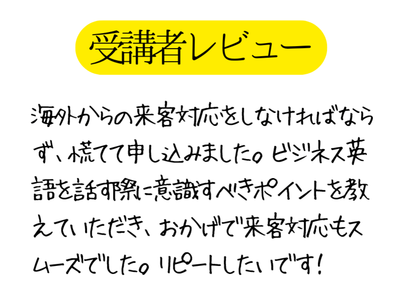 急遽、海外からの来客対応をしなければならず、準備のため慌てて申し込みました。