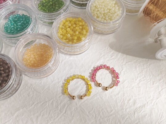 見る•聞く•触れる。五感で学ぶ。ビーズに囲まれたパーソナルレッスン。自分色のイヤーカフ作り。WireWorkBasicTechnique