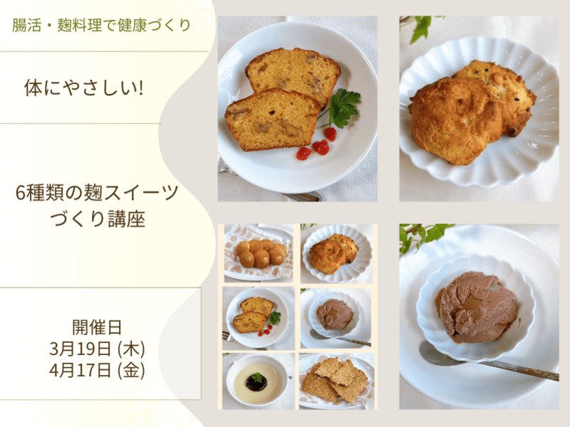 ≪3月19日(木)、4月17日(金)体にやさしい6種の麹スイーツづくり講座≫