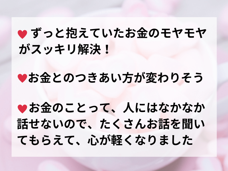🌟ずっと抱えていたお金のモヤモヤを、吐き出させてもらえたことで、スッキリしました