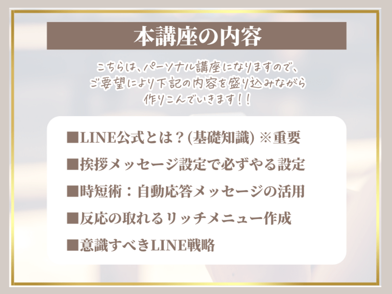 【LINE公式集客の仕組み化カスタマイズ講座(2時間)】です。