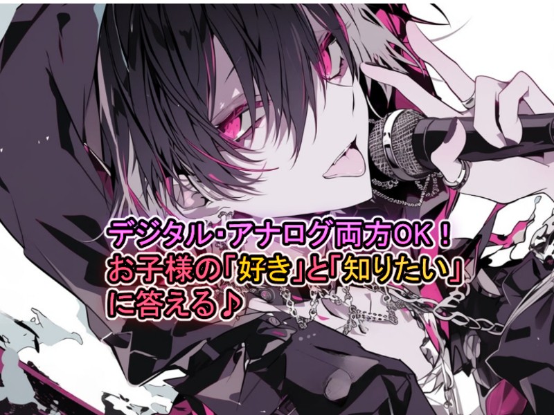 イラストや漫画、アニメ、ゲーム等に興味のあるお子様と、実際に講師の描いている画面をシェアしながら楽しくレッスンします!自信も7歳児のママであり、とてもフレンドリーで「褒めて伸ばして自信を持って頂く」をモットーにしている講師ですので、恥ずかしがりのお子さんも、元気なお子さんも、緊張せずに受けて頂けます✨ レッスン後には「楽しかった!」「自信がついた!」「上手になった!」との沢山の嬉しいお言葉を頂いています。
