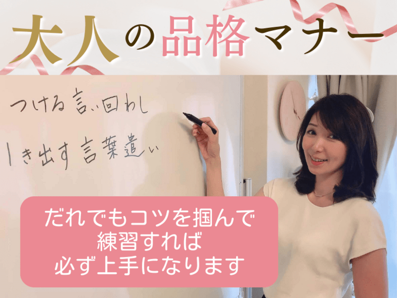 今回の授業では常識的なマナーに加え、美しい立ち振る舞い、そして言葉遣いを教えて頂き、女性の品格を上げる沢山の学びを受ける事が出来ました。