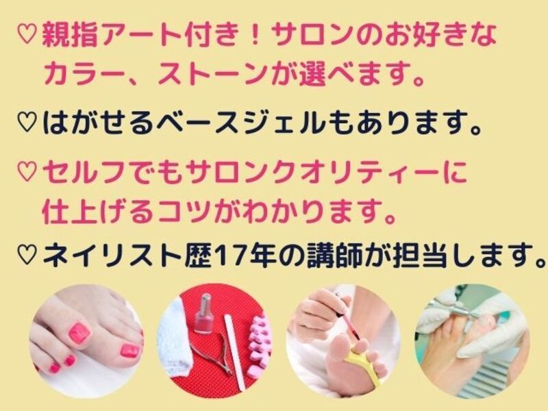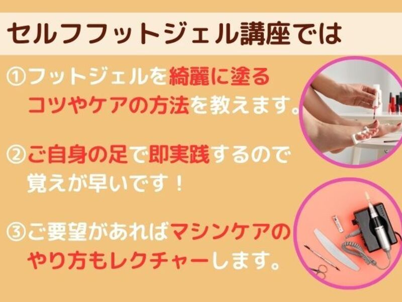 手ぶらで受講OK!対面でセルフフットジェルのコツをしっかりお伝えします。