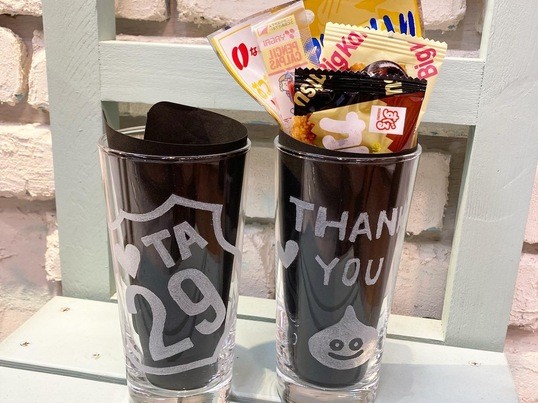 オリジナルデザイングラスの講座は、初めての受講でしたが、楽しみながらオリジナルの記念のグラスを作ることが出来ましたありがとうございました!