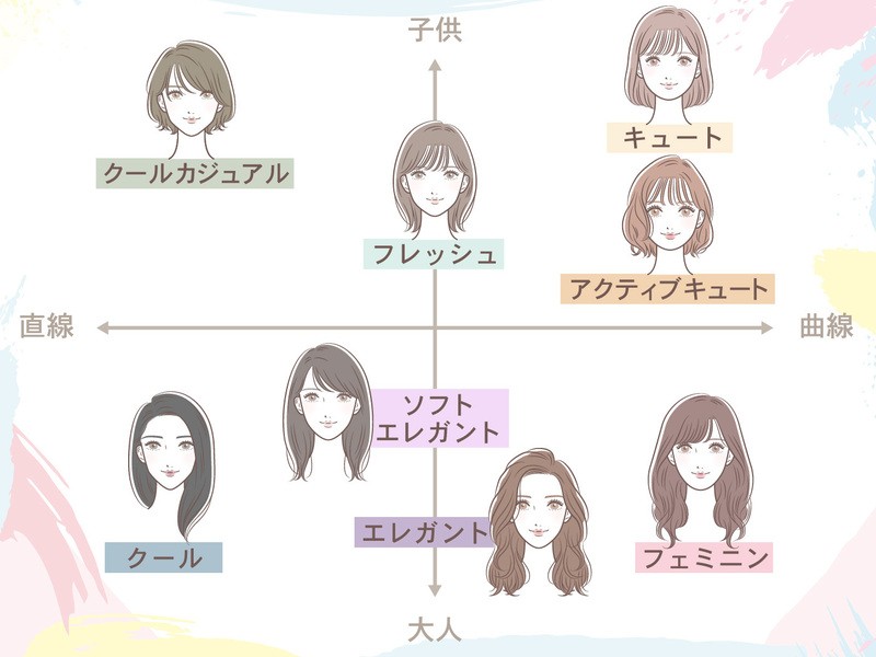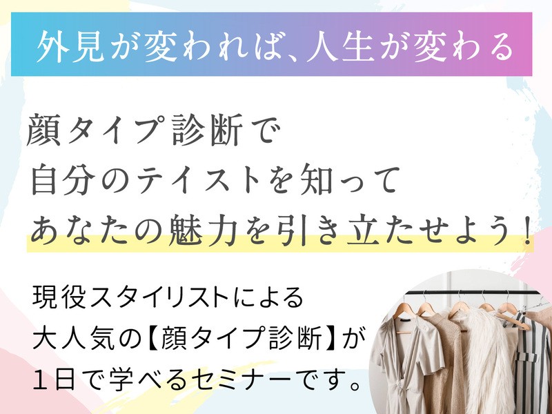 ファッションやメイク、ヘアスタイルの 自分に似合うを見つける 「顔タイプ診断」を行い、 お洋服をを選ぶ際のポイントをレクチャー